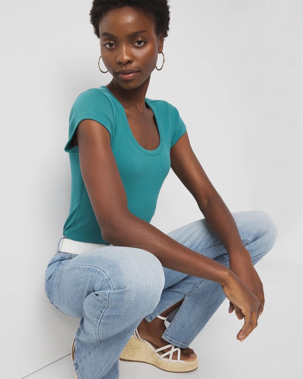 Part of our new WHBMFORME™ collection, this ribbed stretch scoop neck top gives you the iconic look you want in a tee. Our ribbed fabric stretches and smooths your body, offering a flattering silhouette.