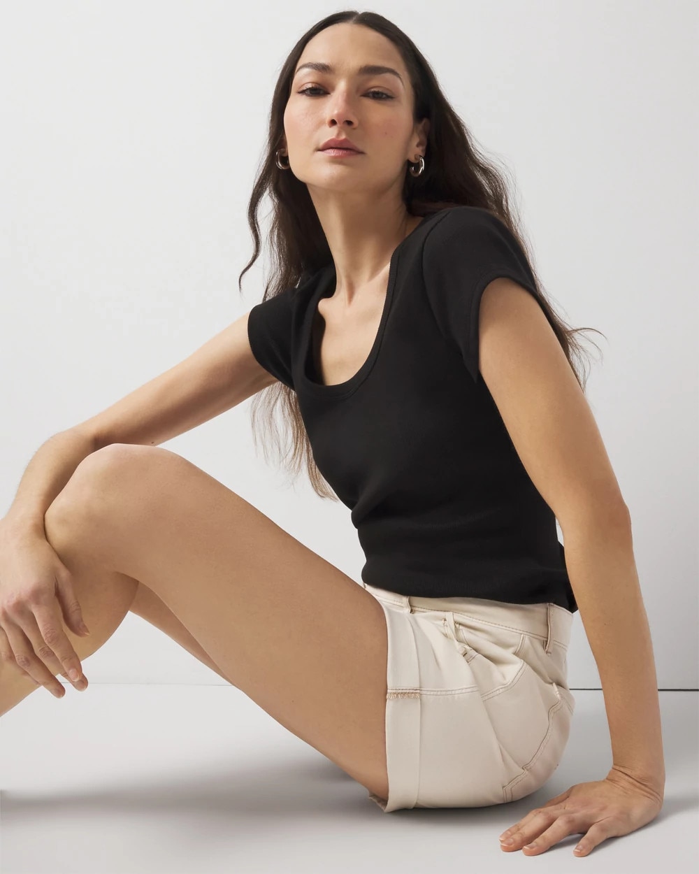 Part of our new WHBMFORME™ collection, this ribbed stretch scoop neck top gives you the iconic look you want in a tee. Our ribbed fabric stretches and smooths your body, offering a flattering silhouette.